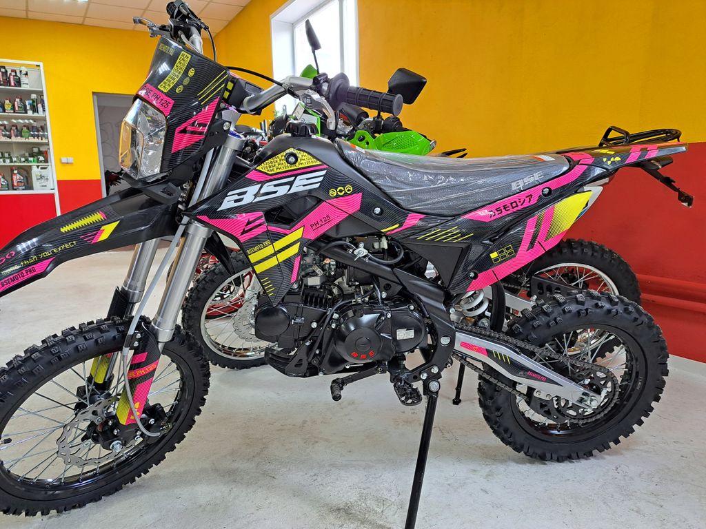 BSE PH10-125 классический питбайк с объёмом двигателя 125 см3 обладает рядом модификаций и полезных усовершенствований, которые дополняют его функционал и отличают от конкурентов.