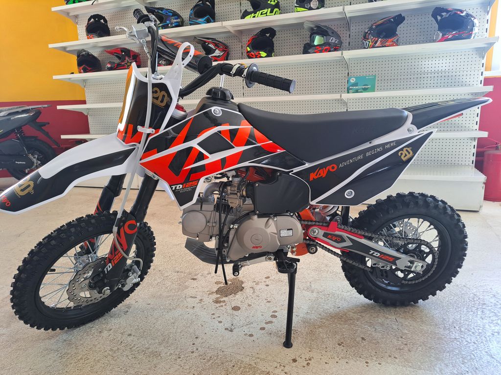 Питбайк KAYO Mini TD125 14/12 – подходящий вариант для смелых ребят от 8 лет. С ним можно научиться основам и контролю скорости на крутых спусках или сыпучих грунтах. Можно использовать и на лёгких кроссовых трассах, и на более сложных рельефах.