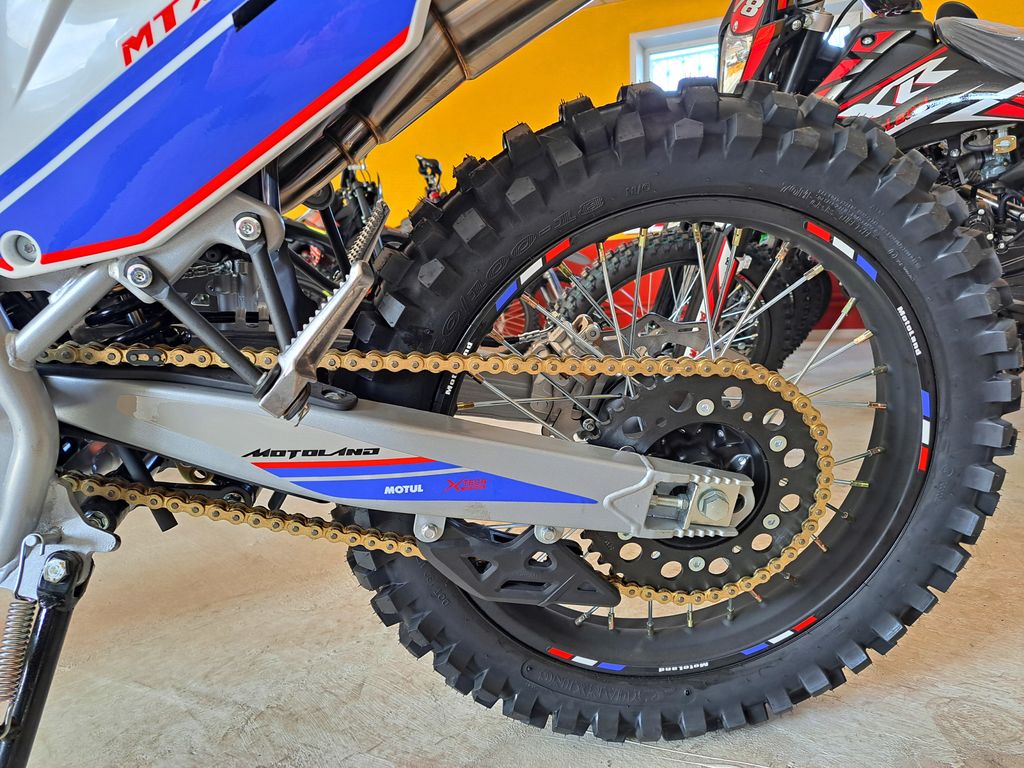Покрышки 80/100 21” и 110/100 18” с мощными грунтозацепами, обеспечивающими превосходное сцепление с грунтом и позволяющими контролировать управляемость на нестабильных поверхностях кроссовых трасс. Передние и задние тормоза дисковые.