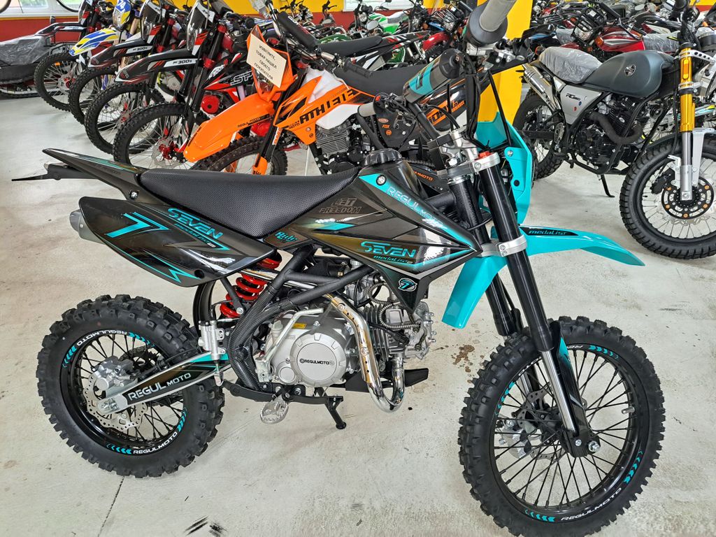 Regulmoto SEVEN PRO на колесах 17/14 дюймов – обновлённая модель популярного питбайка для активного отдыха и спортивных развлечений. Этот мини-мотоцикл поможет своему владельцу получить или усовершенствовать навыки управления внедорожной мототехникой, и станет надежным напарником в поездках по любому бездорожью.