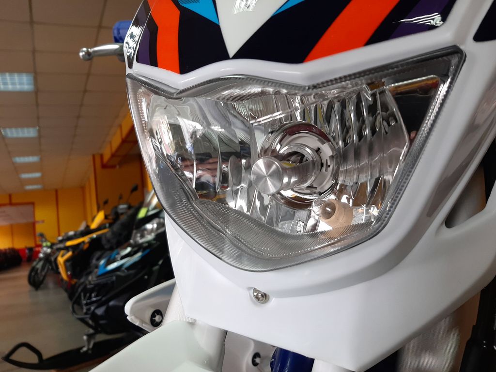 Модель оснащена всем необходимым набором опций: фара и щиток под стартовый номер, буксаторы, моточасы, глушитель из нержавеющей стали, замок зажигания и все это дополняет эргономичное противоскользящее сидение.
